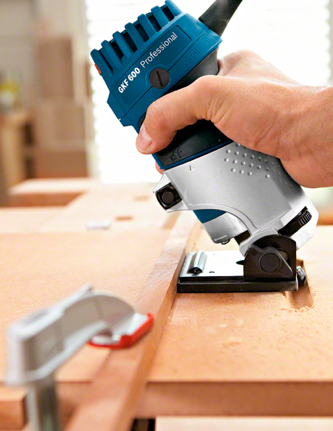 L’affleureuse filaire GKF 600 Professional est un outil très pratique spécialement conçu pour le fraisage précis des bords et des chants. Sa forme optimisée en fait une affleureuse filaire très compacte. Le réglage en continu de la profondeur de fraisage et le moteur sans jeu permettent un réglage exact et assurent une grande précision. Les accessoires variés fournis assurent une grande polyvalence dans une grande variété d’applications.