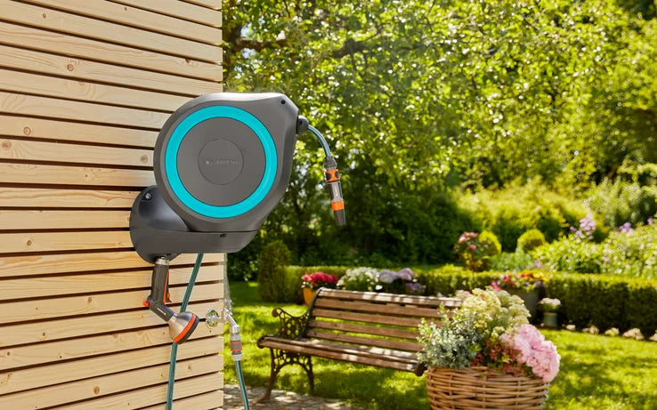 Une fois fixé au mur, le dévidoir peut être utilisé toute l’année car il dispose d’une protection anti-gel et anti-UV.