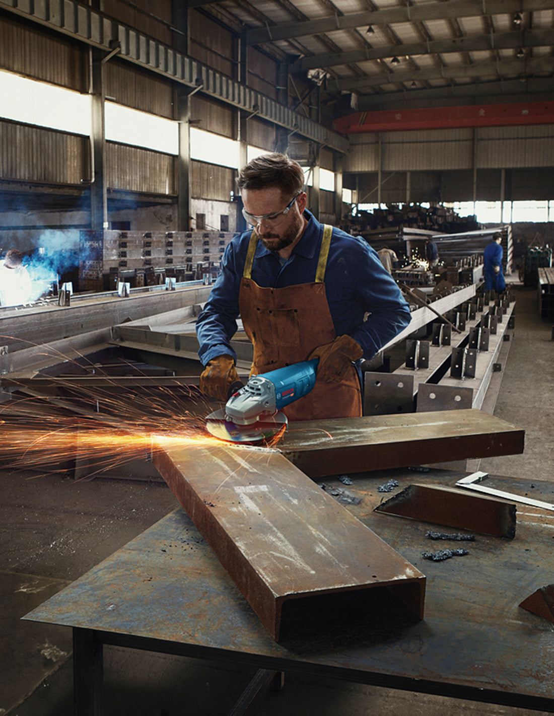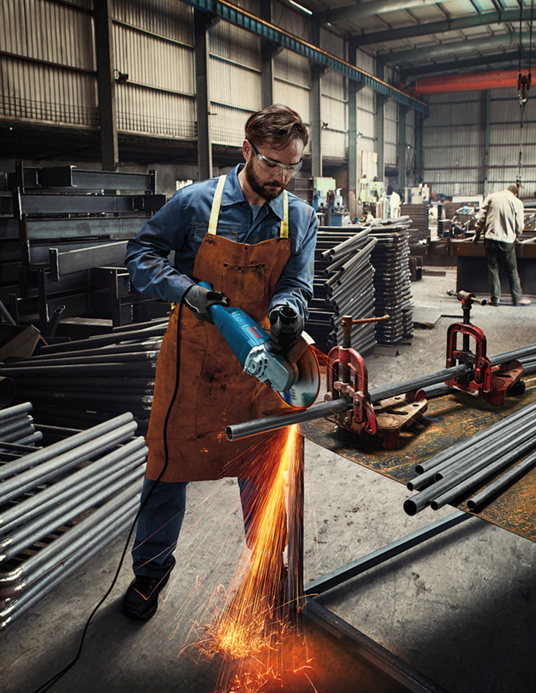 La meuleuse angulaire GWS 22-230 P Professional se distingue par une synergie parfaite entre performances et robustesse et par une protection améliorée de l’utilisateur grâce au PROtection switch (interrupteur homme mort). L’enlèvement de matière élevé rendu possible par le nouveau moteur de 2 200 W garantit de très bonnes performances de tronçonnage. L’échauffement réduit du moteur et le contact amélioré entre le moteur et les charbons confèrent à la GWS 22-230 P une longévité nettement plus élevée. En déclenchant automatiquement l’arrêt de la meuleuse angulaire dès qu’il est relâché, le PROtection switch (interrupteur homme mort) améliore grandement la protection de l’utilisateur.