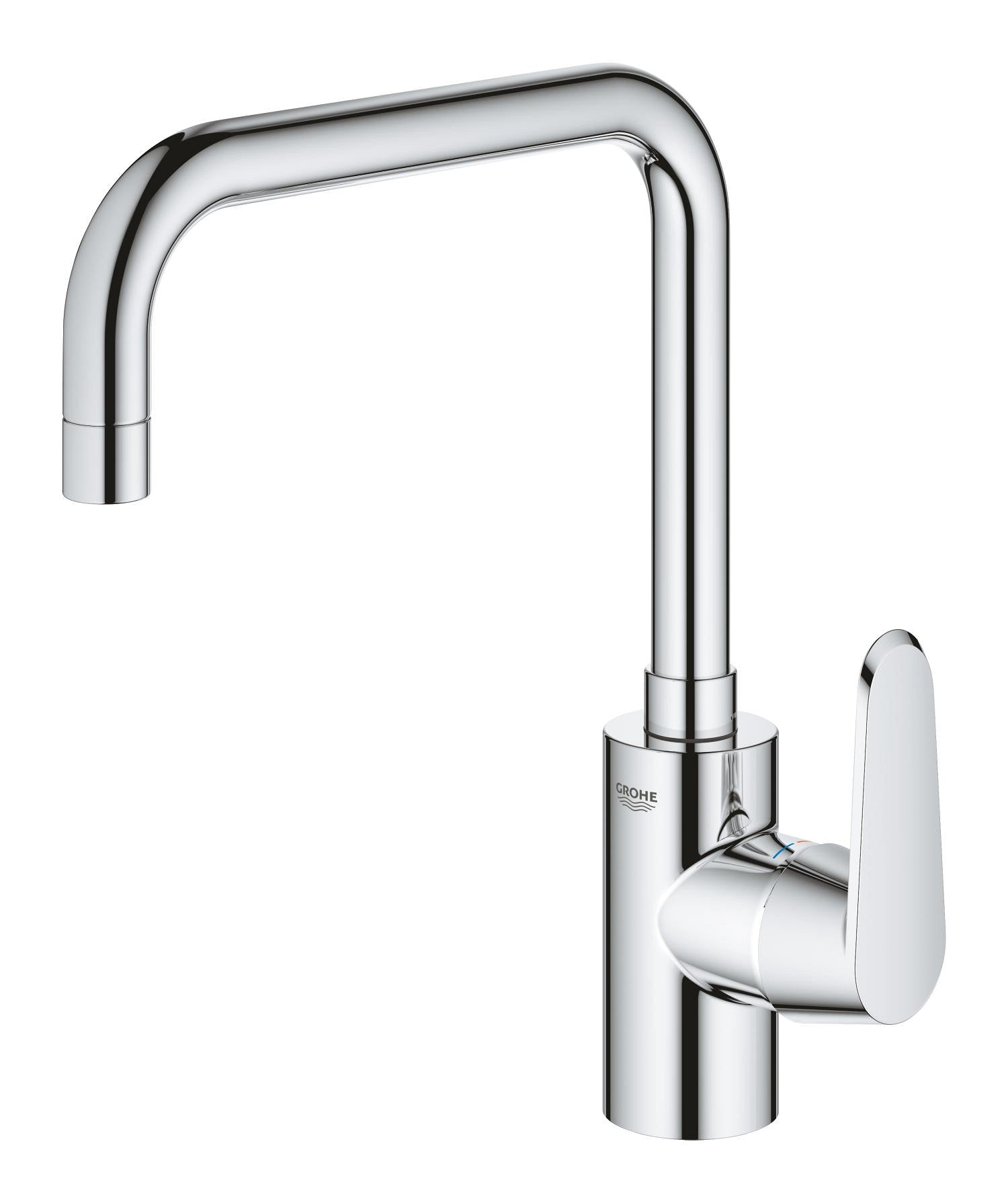Bec haut. Monotrou sur plage. GROHE Finition Longue Durée. GROHE SilkMove Cartouche en céramique 35 mm. Conduit d'eau interne sans plomb ni nickel. Limiteur de débit ajustable. Bec tube pivotant. Zone de rotation 150°. Mousseur. Flexibles de raccordement souples. Set de fixation métal. Débit maximum à 3 bars : 10 l/min.