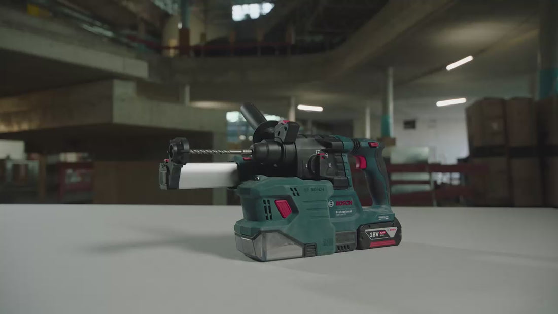 Pour un travail plus propre, vous pouvez raccorder au perforateur le dispositif d’aspiration GDE 18V-12 Professional en un seul clic. Et vous pouvez travailler efficacement avec moins d’interruptions grâce à au haut niveau de performance du perforateur et à la grande autonomie de batterie.