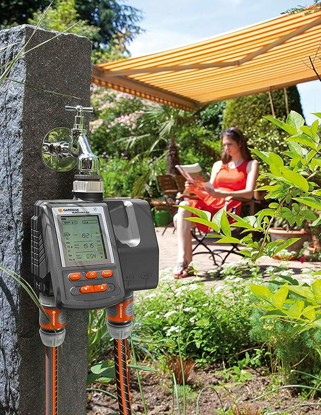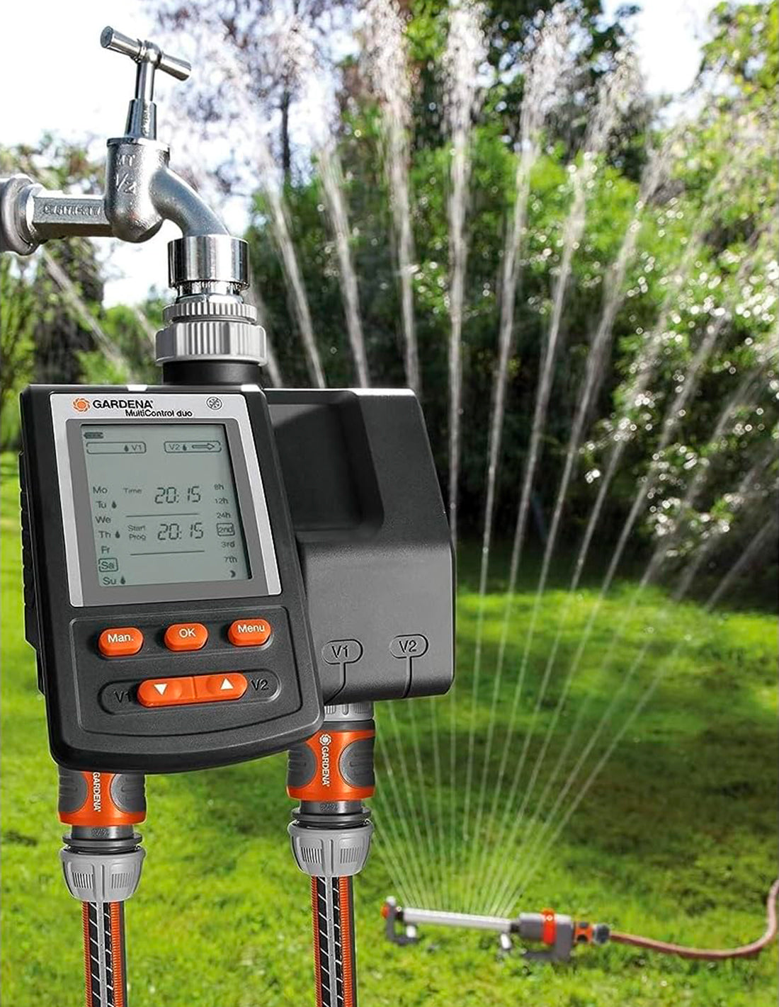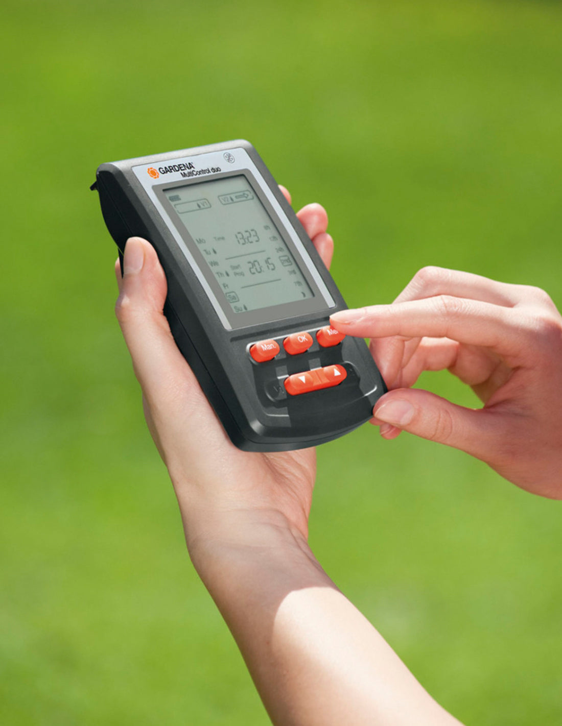 Le programmateur d'arrosage MultiControl duo GARDENA vous permet d'arroser deux zones différentes du jardin en même temps, même lorsque vous n'êtes pas chez vous.
