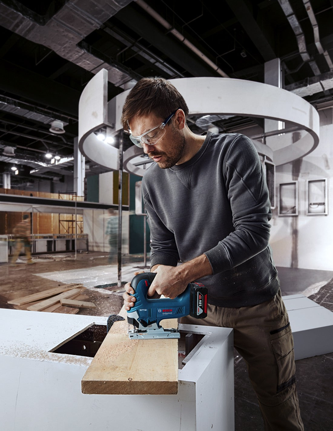 Cette scie sauteuse sans-fil est idéale pour les coupes courbes et transversales dans le bois massif, les panneaux agglomérés, les bois composites et les matériaux durs ou épais. Elle peut être fixée sur des rails de guidage via un adaptateur. L’outil est compatible avec toutes les batteries et tous les chargeurs 18V de Bosch Professional (Professional 18V System).
