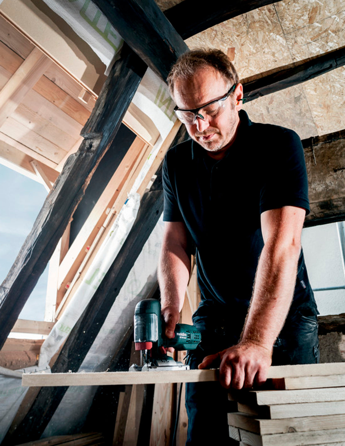 Scie sauteuse extrêmement fine pour un maniement parfait quelle que soit l'application. La possibilité de régler la vitesse, le dispositif pendulaire et le guidage de la lame bas sur ressorts permettent un sciage précis et adapté au matériau. Système Metabo Quick pour changer la lame sans outil avec expulsion automatique. Souffleur de copeaux désactivable pour une bonne visibilité de la zone de coupe. Système électronique à ondes pleines Vario-Constamatic (VC) pour travailler avec des vitesses adaptées aux matériaux et qui restent quasi constantes en charge. Possibilité de brancher un aspirateur tous usages. Vitre de protection imperdable à abaisser pour une aspiration efficace et comme protection contre les projections de copeaux. Rail de guidage et dispositif de guidage disponibles en option.