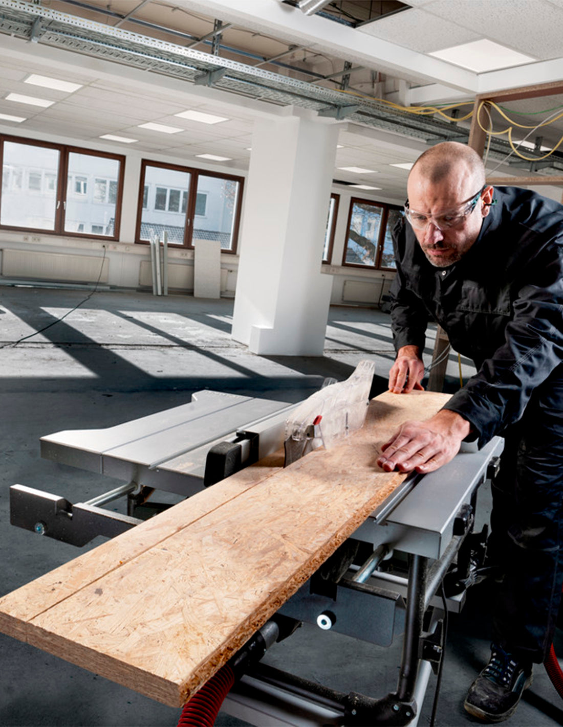 Scie circulaire de table mobile compacte avec une bonne capacité de coupe et un confort de travail élevé. Structure rigide en tubes d'acier pour résister aux sollicitations élevées sur le chantier et durant le montage. Le câble et toutes les pièces rapportées peuvent être rangées sur la machine pour le transport. Moteur à entraînement puissant et protection électronique contre la surcharge. Frein moteur pour l'arrêt rapide de la lame de scie en 3 secondes. Protection anti-redémarrage : empêche tout démarrage involontaire après une coupure de courant. Démarrage progressif pour une longue durée de vie du moteur et du réducteur. Guide latéral à réglage précis avec double système de serrage et fixation rapide. Inclinaison précise de la lame de scie grâce au guide à couronne dentée. Remise automatique à l'état initial 0-45° après une contredépouille. Changement de lame facile grâce au blocage de la broche. Couteau diviseur abaissable sans outil pour le transport. Extension latérale et rallonge de table précises et coulissantes pour une surface de travail particulièrement grande.