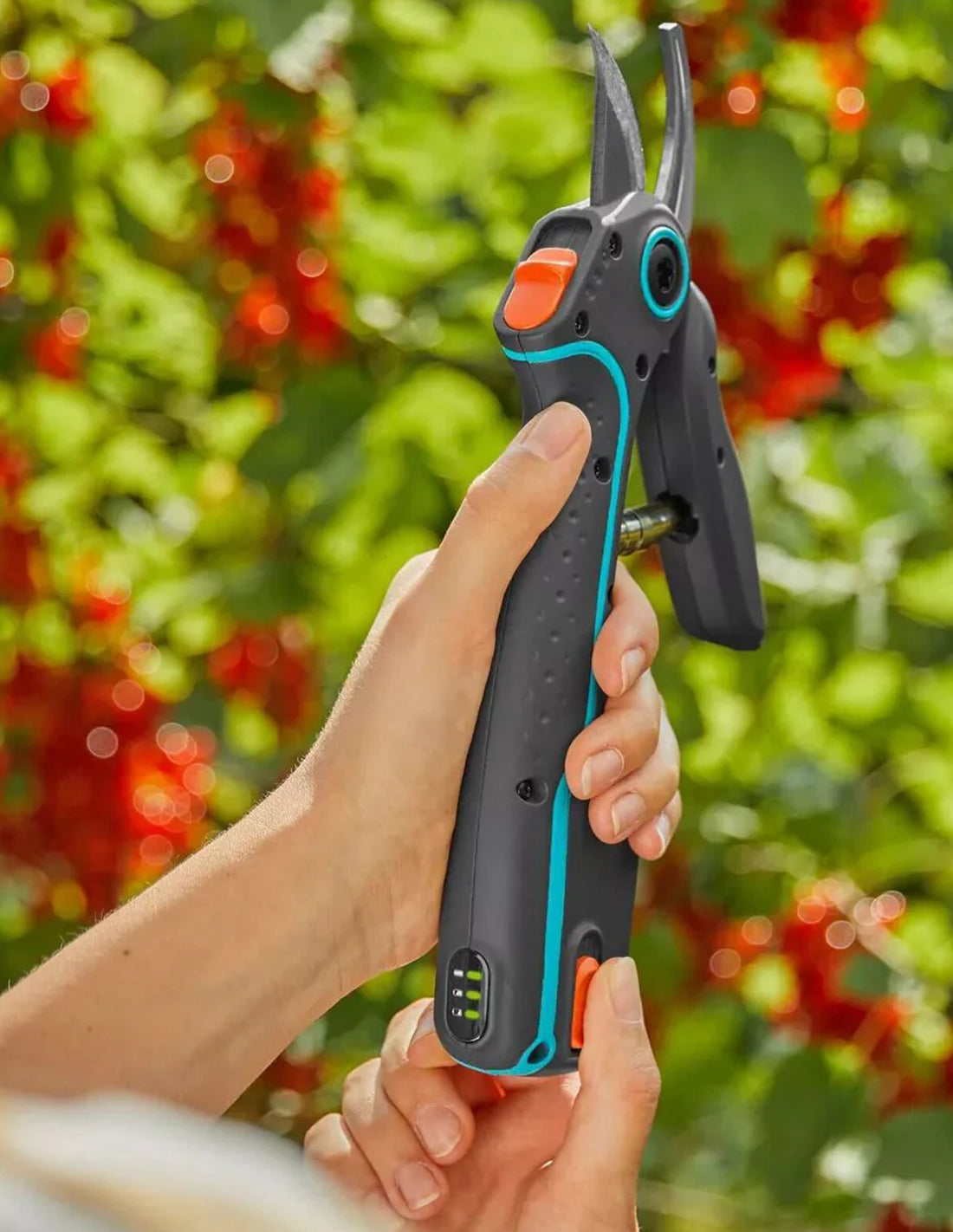 Le sécateur sur batterie est doté d'un capteur intelligent, qui fournit jusqu'à 5 fois plus de puissance (par rapport à un sécateur ordinaire) lors de la coupe de branches plus épaisses, dès qu'une résistance est détectée.