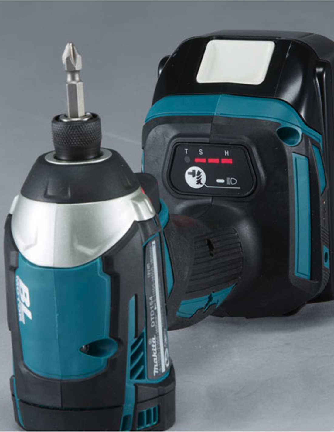 Lumière LED pour éclairer le point de travail dans les zones à faible luminosité. La LED reste allumée quelques secondes après avoir appuyé sur la gâchette. Elle peut être désactivée en appuyant et en maintenant le mode.